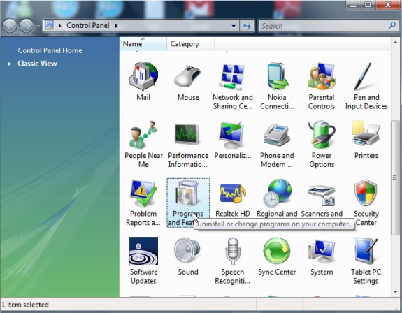 - Double click on "Programs and Features"